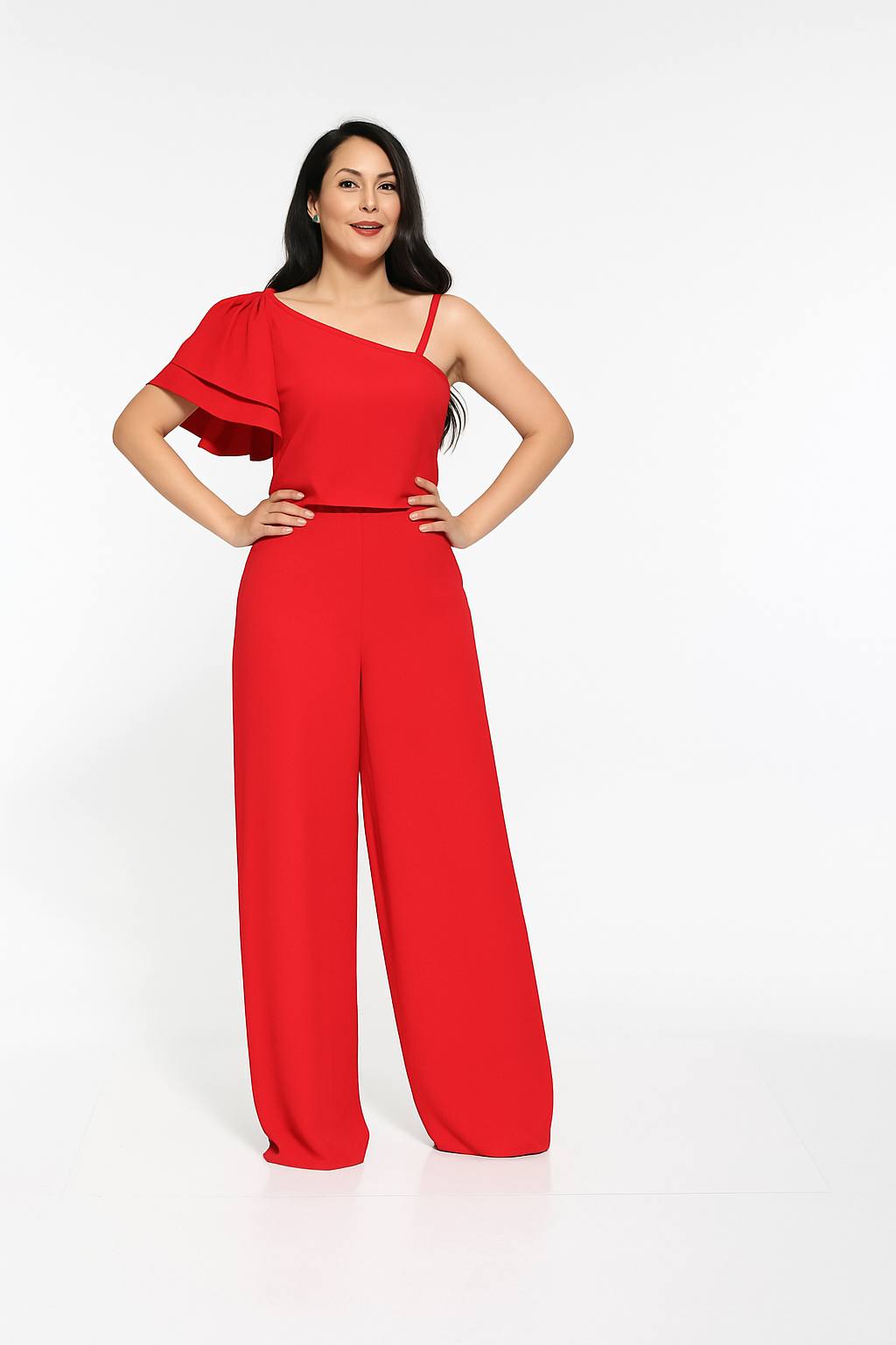 Ολόσωμη φόρμα Μουσελίνα Κόκκινη Με Έναν ώμο Plus Size