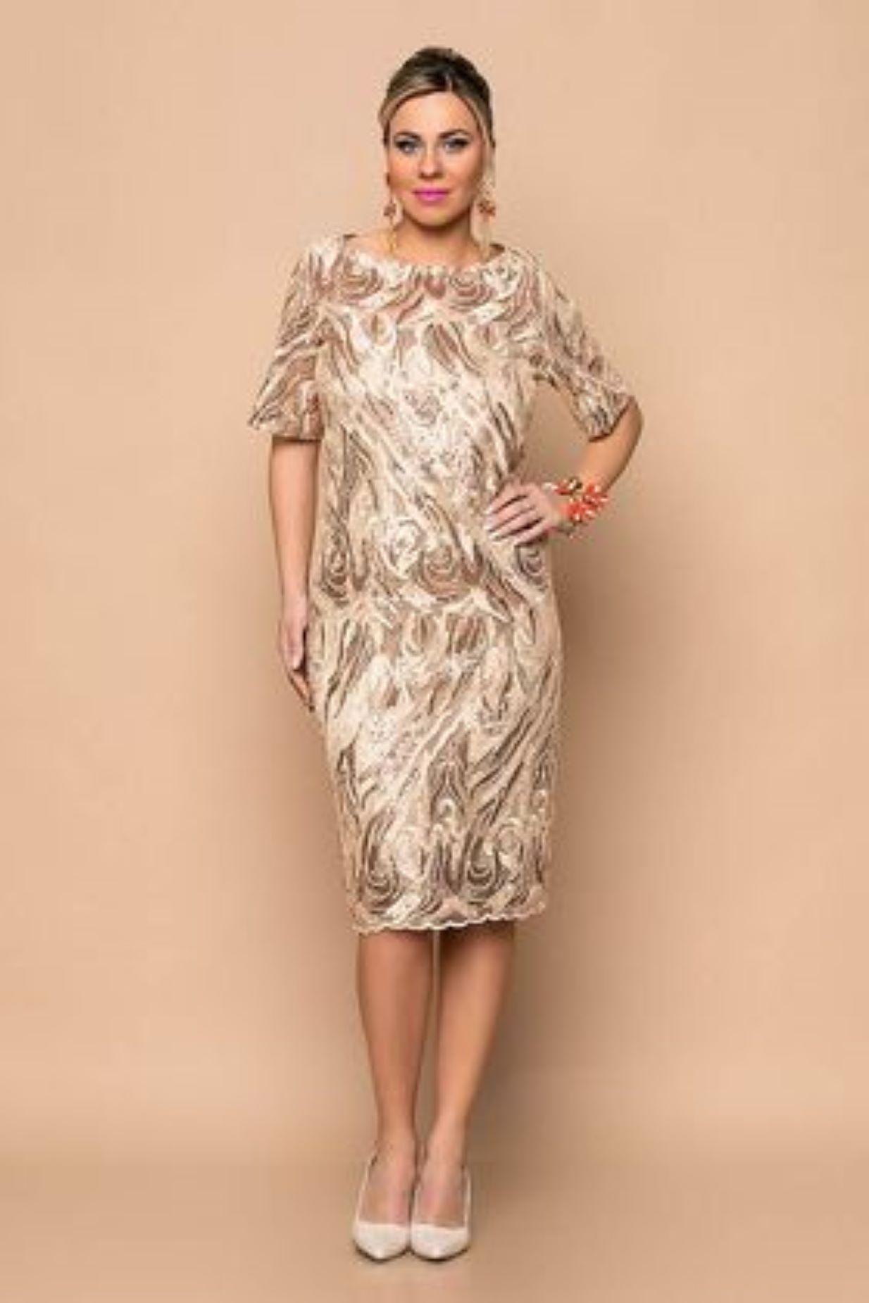 Φόρεμα midi δαντέλα με πούλια